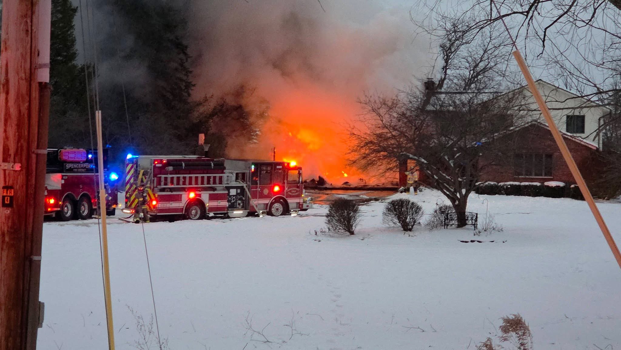 The Red Cross was called to assist the 14 people displaced by this January 3 fire on Pine Hill Road in Parma. Photo from @SpencerportFD on X.