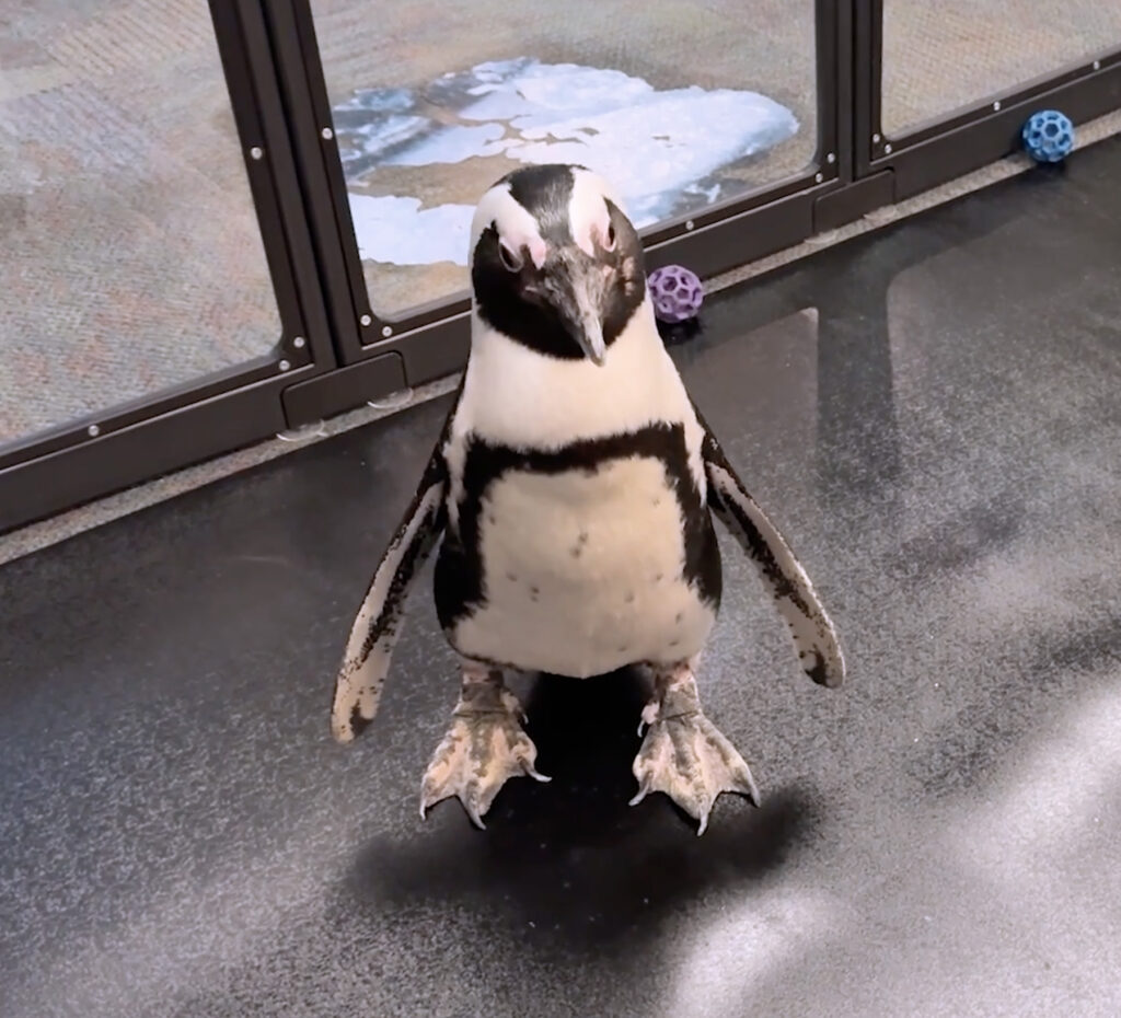 “Penguins have a very low center of gravity, so they’re kind of bottom-heavy. And because they don’t have really long legs, all of that leg is internal, they ride a little bit lower to the ground in general, too. So if you do that, and you kind of have your legs further spread apart, and you walk nice and slow and gentle, you’re going to be less likely to slip on the ice,” said zookeeper Brenna DeAngelis.