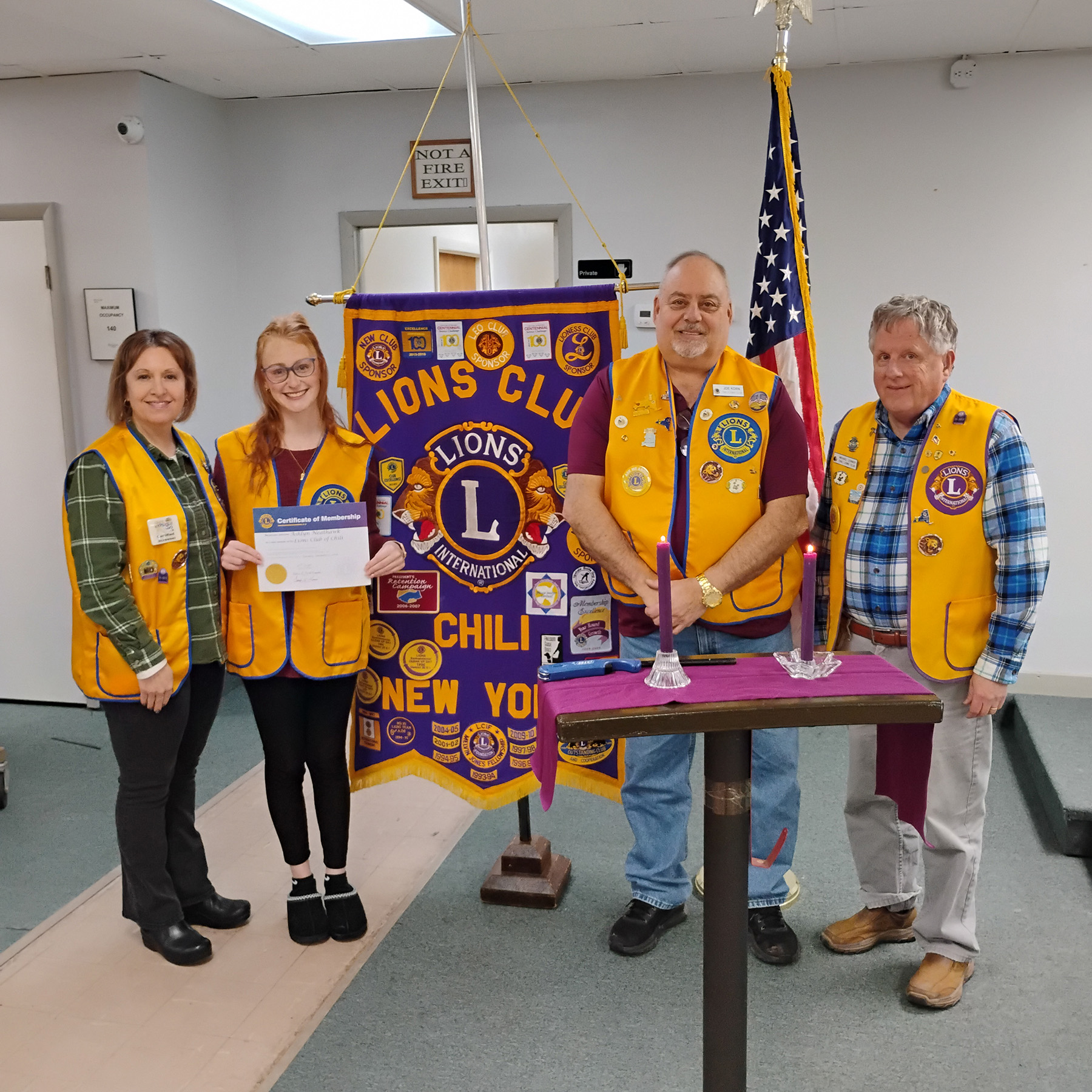 The Lions Club of Chili recently welcomed new Lion Ashlyn Neathawk to their organization. She is a former Churchville-Chili Leo Club member and a former Girl Scout who earned her Bronze, Silver, and Gold Awards. She works as a teacher’s aide at Monroe One BOCES. Her sponsor is Lion Keri Neathawk. Pictured are (l-r) Lion Keri, Lion Ashlyn, President Lion Joe, and Lion Mike. For more information about the organization, contact Lion Mike Donner at 585-704-7265.