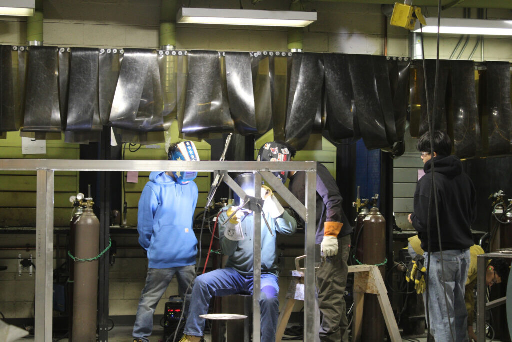 Students measured, cut, and welded the metal frames that form the foundation of the pens, applying technical skills learned in the classroom to an initiative that will benefit the community.