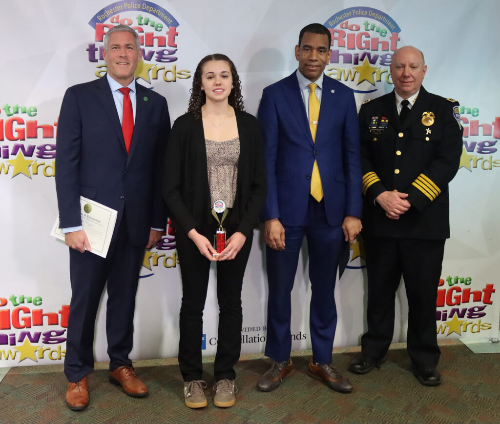 Churchville-Chili senior high school student, Kaitlyn Pozzuolo, was one of 15 students from across Monroe County honored at the Do the Right Thing Awards program on February 26. The program is sponsored by the Rochester Police Department and recognizes students who have gone above and beyond to do the right thing.