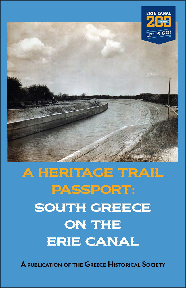 A Heritage Trail Passport: South Greece on the Erie Canal shares a little bit of Greece canal history at 29 stops in South Greece. Complete with photos, maps, and a bibliography, the 24-page booklet has space available to check off each site and note the date seen. (Please note: Most of these sites are private and not open to the public but can be viewed from the road or canal trail.)