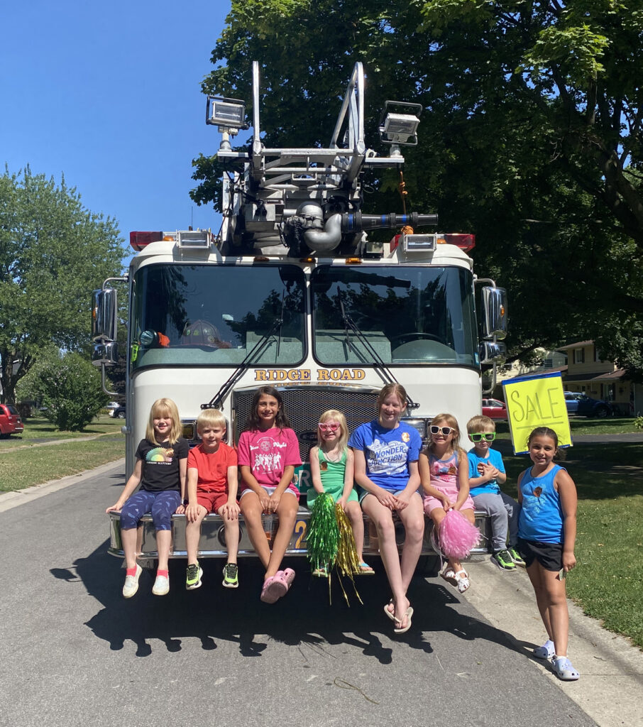 Lea said that it was an amazing experience for the kids. “The fire chief was honking down the street and exclaiming, ‘Stella has the best lemonade stand in town!’ The kids all pitched in to help with lemonade stand, and they all had pompoms and were waving the chief down!”