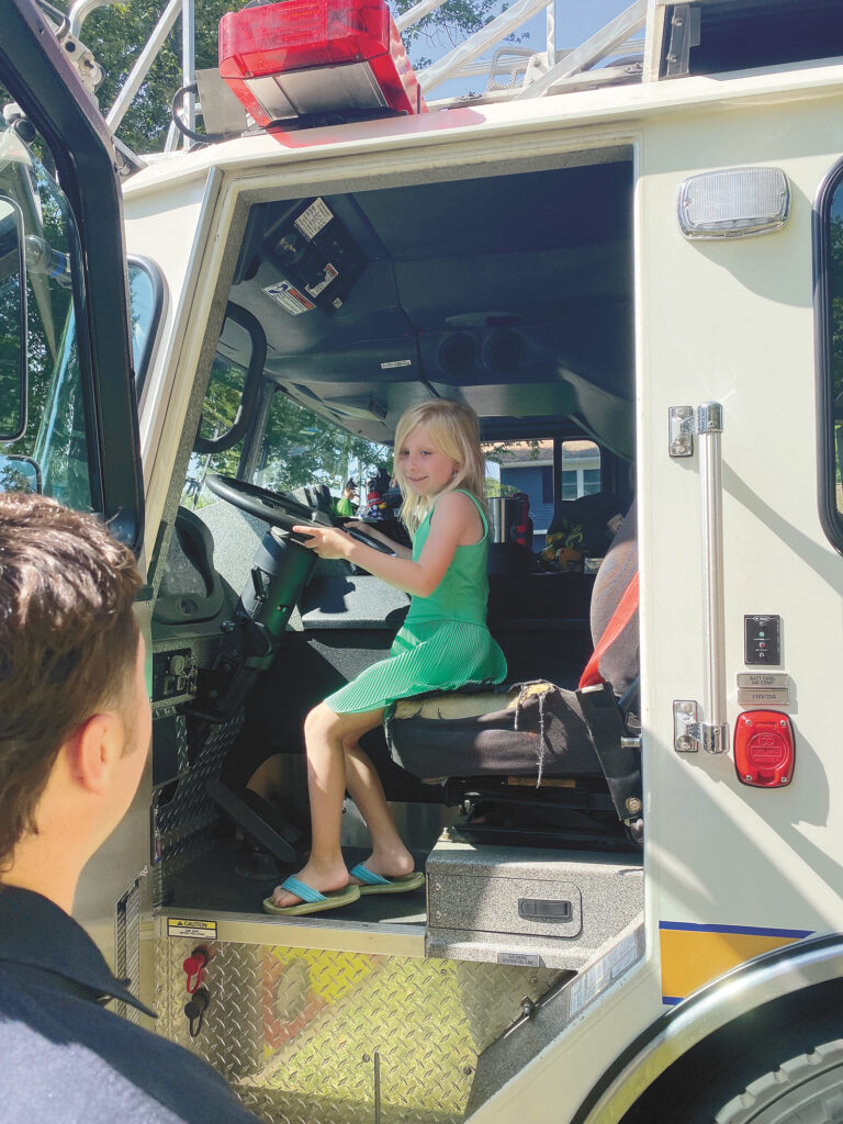 The Ridge Road Fire District Chief brought along two trucks and his team, too. The firemen met with all the kids, gifted them with fire hats and stickers, and let them all take turns sitting in the driver seat of the truck.