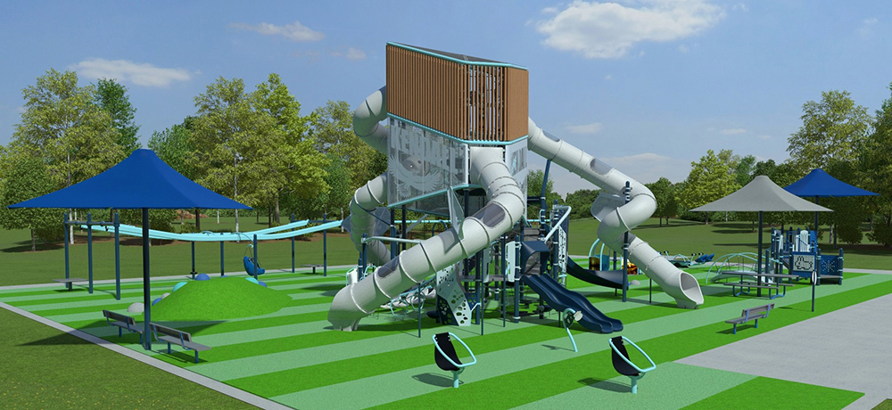 Work began in early May and will continue through the summer, with a grand opening planned for early fall. The existing woodchip base will be replaced with turf to improve cleanliness, accessibility, and year-round use.