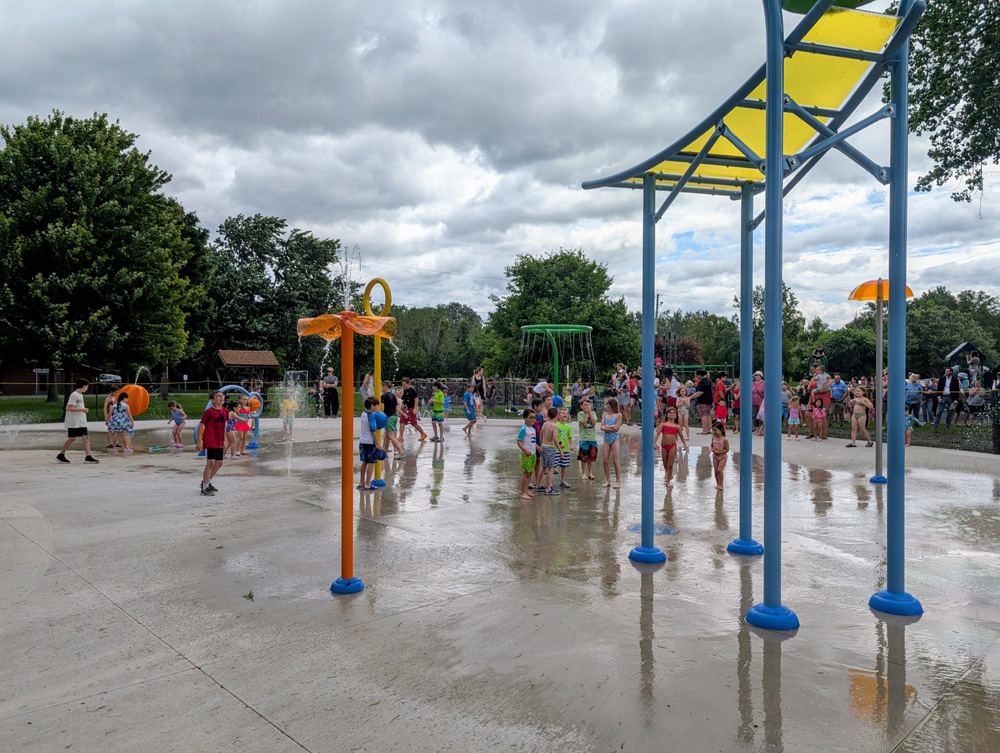 On Thursday, June 19, the Town of Ogden held a grand opening and ribbon cutting ceremony for its new Splash Pad, located at Pineway Ponds Park. The new Splash Pad covers 4,300 square feet and features 22 spray elements, highlighted by a large, crowd-pleasing dumping bucket. This project was funded through a combination of town savings, ARPA funds, a New York State grant and a generous donation of labor.