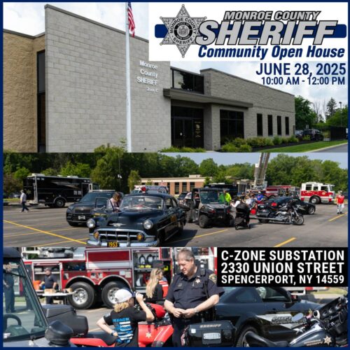 The Monroe County Sheriff’s Office invites the community to tour the C-Zone Police Substation in Spencerport on June 28 from 10 a.m. to noon. Get to know the deputies serving our community. Meet with members of specialized units, such as the SWAT, SCUBA, Hazardous Materials, Hostage Negotiations and Drone Response teams. Explore the equipment they utilize to accomplish their mission. A flag raising ceremony will take place at 10 a.m.