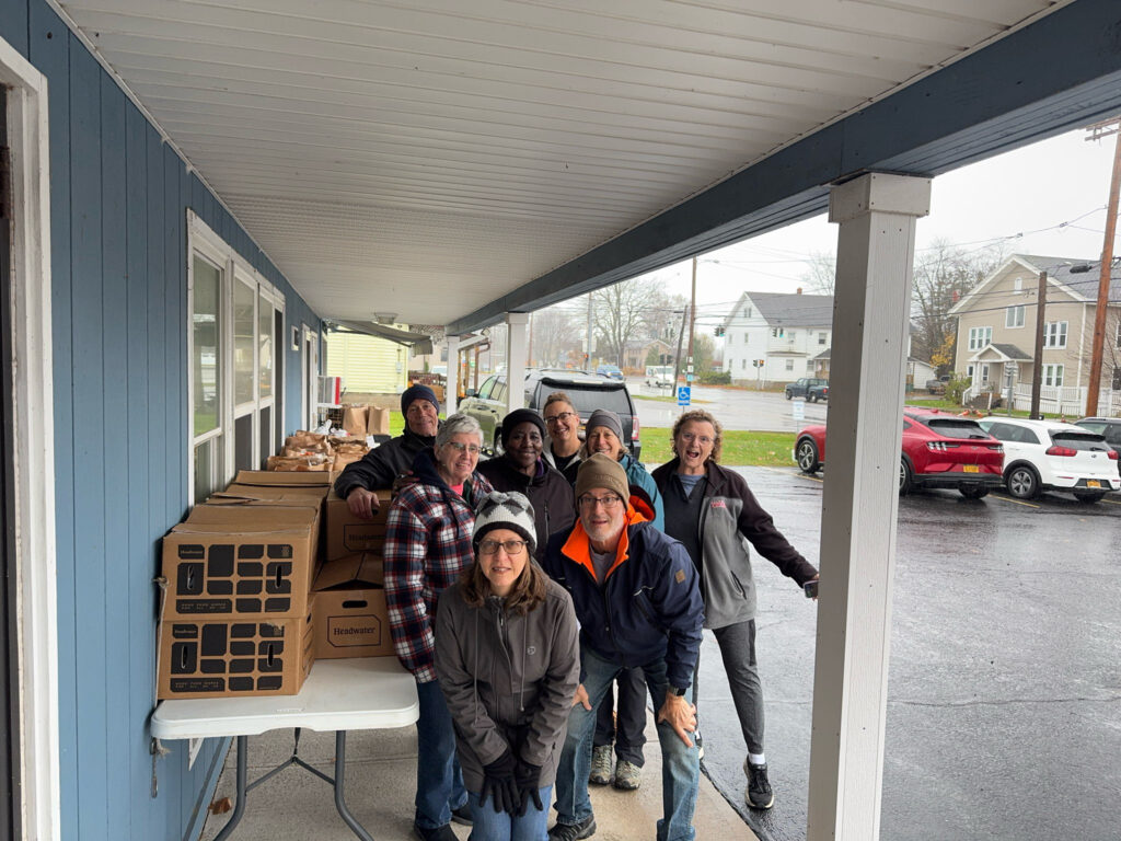 Life Solutions volunteers getting ready to distribute holiday meal baskets in Hamlin.
