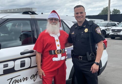 Santa was on vacation in Spencerport and stopped in to see Ogden Police Chief Travis Gray.
