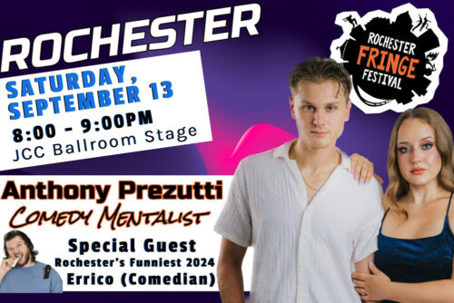 A graduate of Spencerport High School, Prezutti has performed at the Fringe Festival for several years and has built a reputation as an up-and-coming entertainer in the field of comedy mentalism. His high-energy shows blend adult comedy with stunning feats of psychological illusion, inviting the audience into a shared experience they’ll carry with them even after they leave the show.