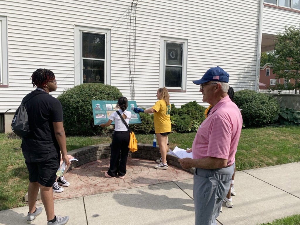 Representing hometowns from Buffalo, Rochester, Syracuse, New York City, Westchester, and Nepal, the students were introduced to the Brockport community through hands-on engagement with local history. Their work involved cleaning and documenting the condition of the museum’s interpretative panels, which are located throughout the community and highlight Brockport’s rich cultural and unique historical heritage. These efforts support the museum’s mission as a “museum without walls,” preserving public exhibits that educate residents and visitors alike.