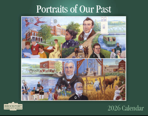 Brockport Community Museum, the area’s “museum without walls,” is releasing a 2026 wall calendar as a fundraising project. Available now from BCM members, some event sites and at Lift Bridge Book Shop, the calendar features the museum’s Interpretative Panels that are mounted throughout the Brockport area. For $25, purchasers will support the museum and gain an historic document to have on their wall for all of 2026 and beyond.