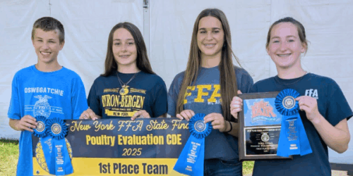 The team members also swept the top four individual slots with Grant Kuipers in fourth, Brook Pagels in third, Ruth Kuipers in second, and Taylor Lundfelt in first place. The team won the Poultry Evaluation contest and will be representing New York at the National FFA Convention in Indianapolis during the last week of October.