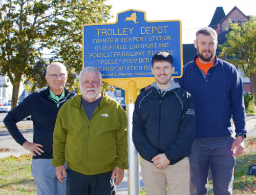 Unfortunately, the marker was stolen in January of 2024 and has not been recovered. Thanks to the generosity of the William G. Pomeroy Foundation and Alexander’s Convenience Center in Brockport, a replacement marker has been re-installed at its former location. Each funded half the marker’s $1,900 cost, for which BCM is grateful.