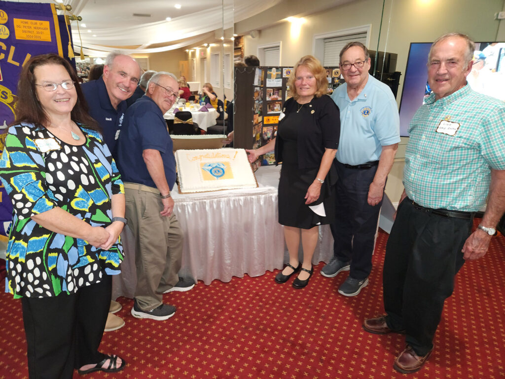 Churchville Lion President Joe DeLeo presided on his 75th birthday (appropriate for the evening’s festivities) and was surprised with “Happy Birthday” and his own cake. He then presented several awards to Churchville Lions Club members in attendance: Lion Mel Sand received a Melvin Jones Fellowship Award, Lion Mark Kohler received a Robert J. Uplinger Distinguished Service Award, Lion Nancy Steedman was recognized as a Career Lion, and Lion Jill Kohler was recognized as Lion of the Year. Past District Governor Judy MacKnight then inducted Rob Phillips as the newest member of the Churchville Lions Club.
