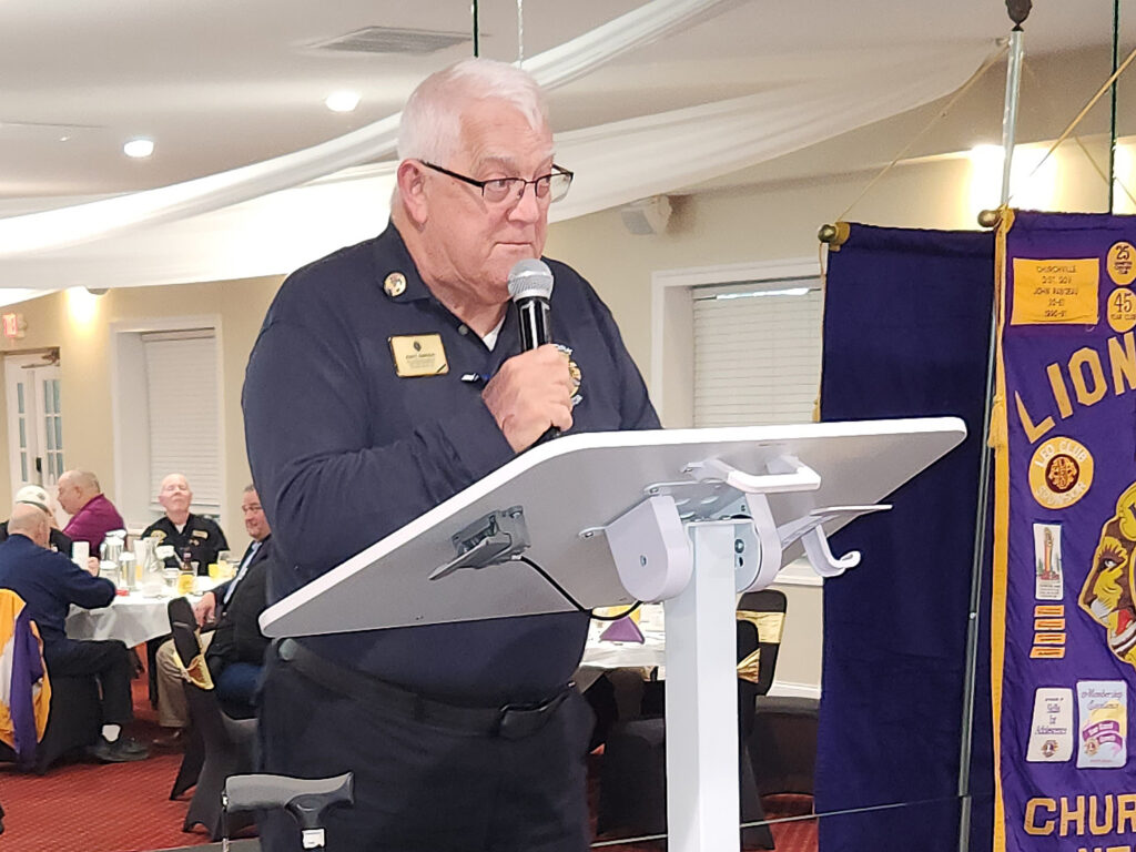The evening celebrated the rich history and achievements of the Churchville Lions and its members. A video display featuring hundreds of photos showcased past and present members, as well as the numerous activities the club has been actively involved in over these decades. A memorabilia table highlighted past District Governors: John Rabideau and Peter Neidrauer, as well as photos and programs from the annual Country Fair, the Community Music Festival, the annual Luminaria Ceremony, and the Churchville-Chili LEO Club. Also included were maps of the Town of Riga’s South Sanford Park, featuring trees planted in memory of deceased Lion members, and the memorial bricks at the Village Memorial Park.
