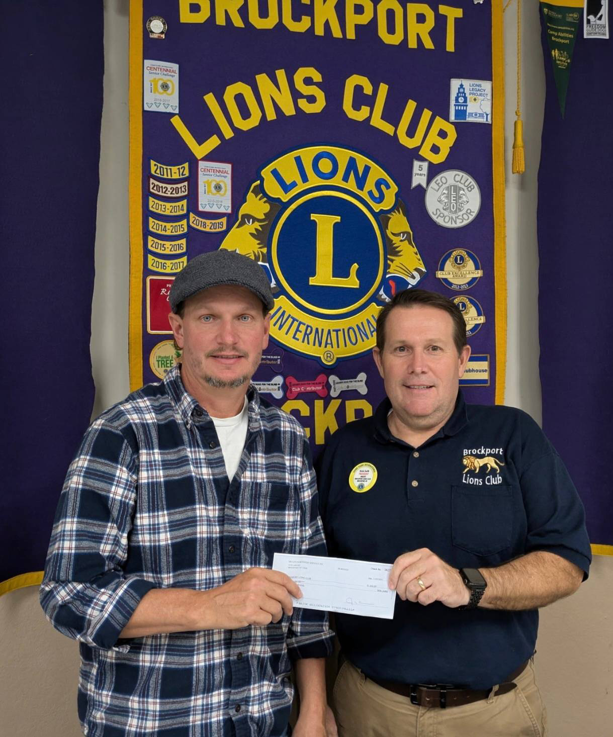 Brockport Lions member John Alexander presented a check for $1,000 on behalf of Northside Service Center to the Brockport Lions Club to distribute food to the community. The Lions Club Board voted unanimously to match this amount, resulting in a total of $2,000. The Lions Club will use these funds to support the following organizations: Brockport Food Shelf, Hamlin Life Solutions, and Jubilee Christian Church for their Thanksgiving Dinner. Lion John Alexander (left) is pictured presenting his check to President Kevin Smith (right). For more information on the Brockport Lions Club, contact Lion Greg Lund at lunddargreg@aol.com.