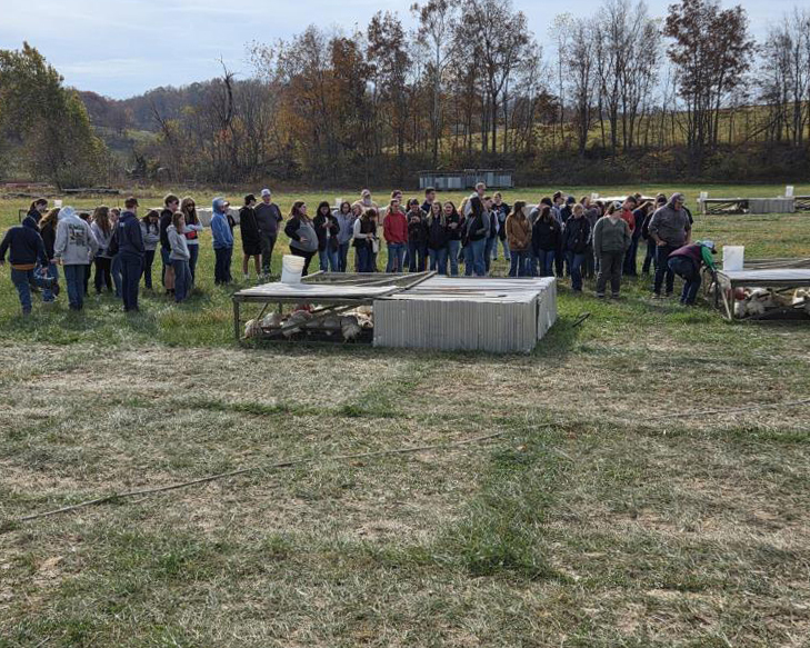 The journey to nationals included stops at Polyface Farm in Swoope, VA, where FFA members learned about regenerative agriculture and intensive rotational grazing. Next, they visited North Carolina Agricultural and Technical State University in Greensboro, North Carolina, to tour dairy, swine, sheep, goat, and beef facilities. Then they headed to the Gilmer County Agricultural Center, which is a public high school in Elijay, Georgia. This center has a public cannery and a partnership with Pilgrim Poultry for a production poultry facility on school grounds, which currently raises 11,200 birds every six to eight weeks.