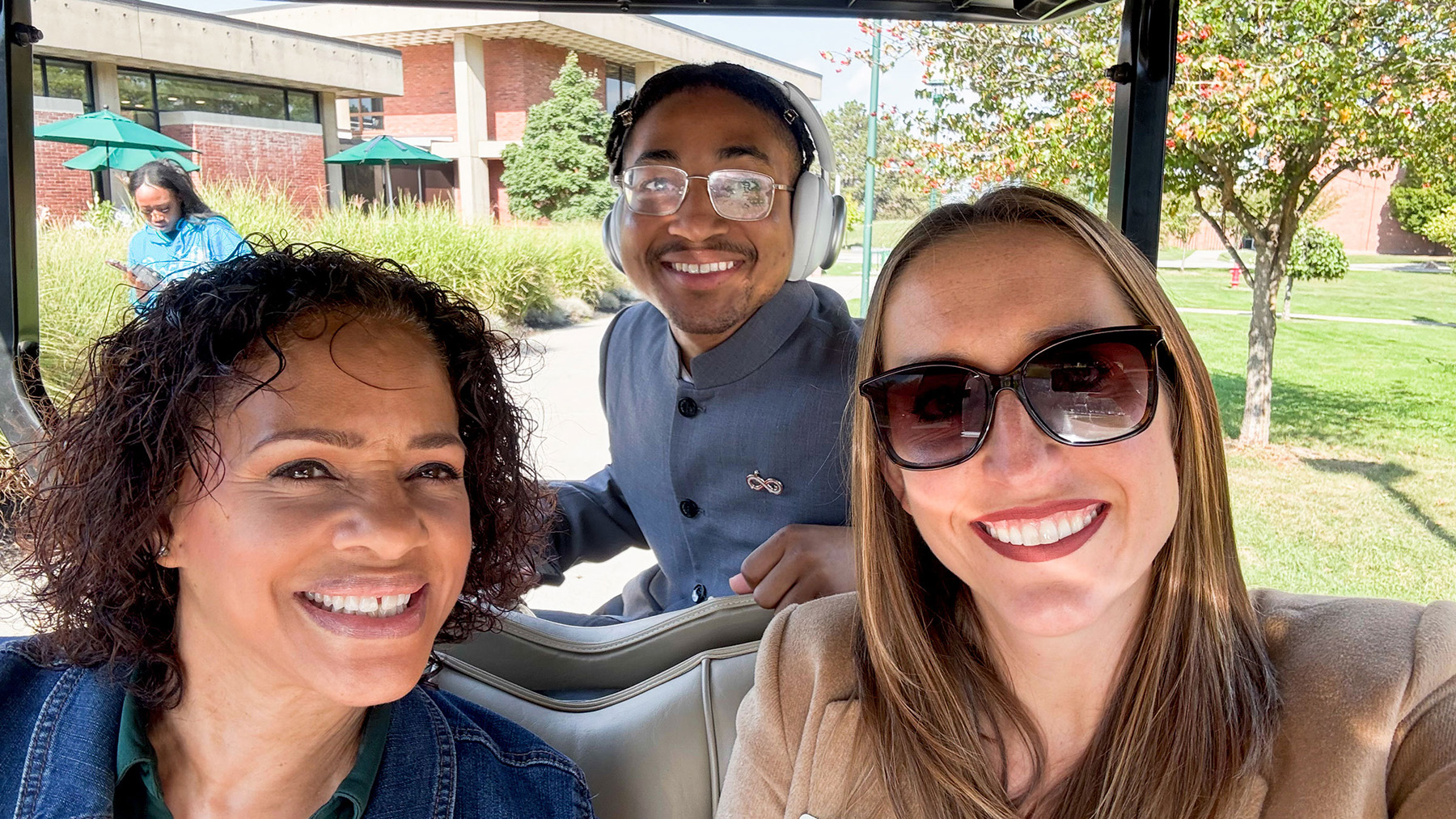 In 2024, SUNY Brockport’s Vice President for Enrollment Management, Sara Kelly, began the Random Acts of Kindness program. Once a month, she and one of the division’s directors travel around campus to surprise students with kind gestures such as golf cart rides to class, donuts, merch, or even photo ops with Ellsworth.