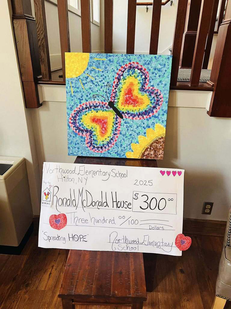 Northwood Elementary School teachers Candice Hudson and Laurie Steele-Sperber wanted to contribute an art piece to the Ronald McDonald House and the result was “Radiating HOPE,” made up of hundreds of Northwood student fingerprints. The artwork will be a permanent addition to the house. They also conducted a fundraiser which raised $300 and presented both to the Ronald McDonald House earlier this month.
