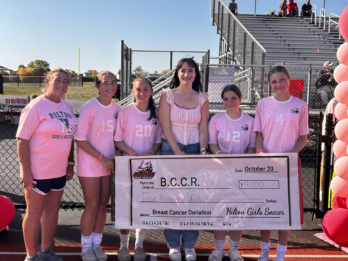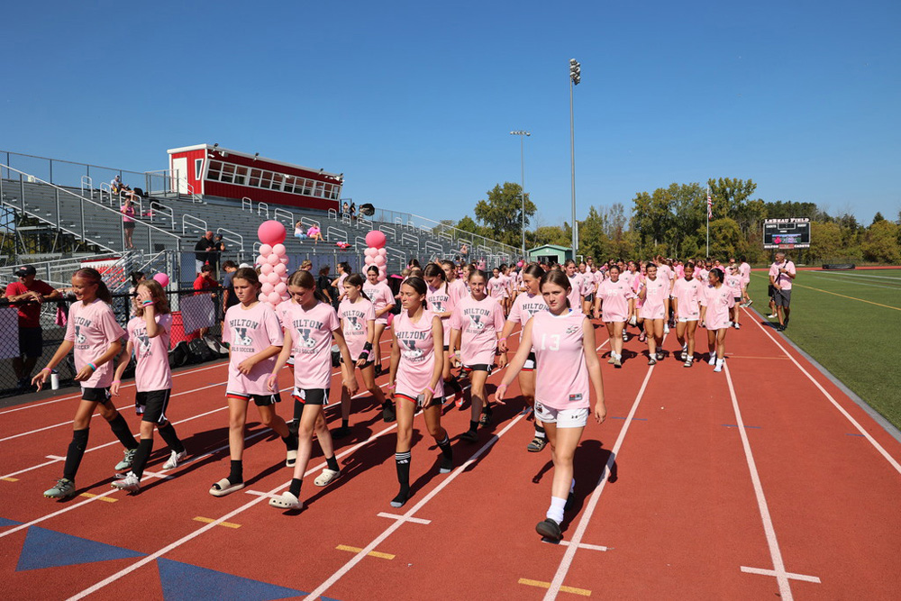 On October 4, the Hilton Cadets girls soccer team held its annual Kicking Out Cancer Day. Thanks to everyone who played a part in making this such a great day for a great cause, raising $4,000 for the Breast Cancer Coalition of Rochester.