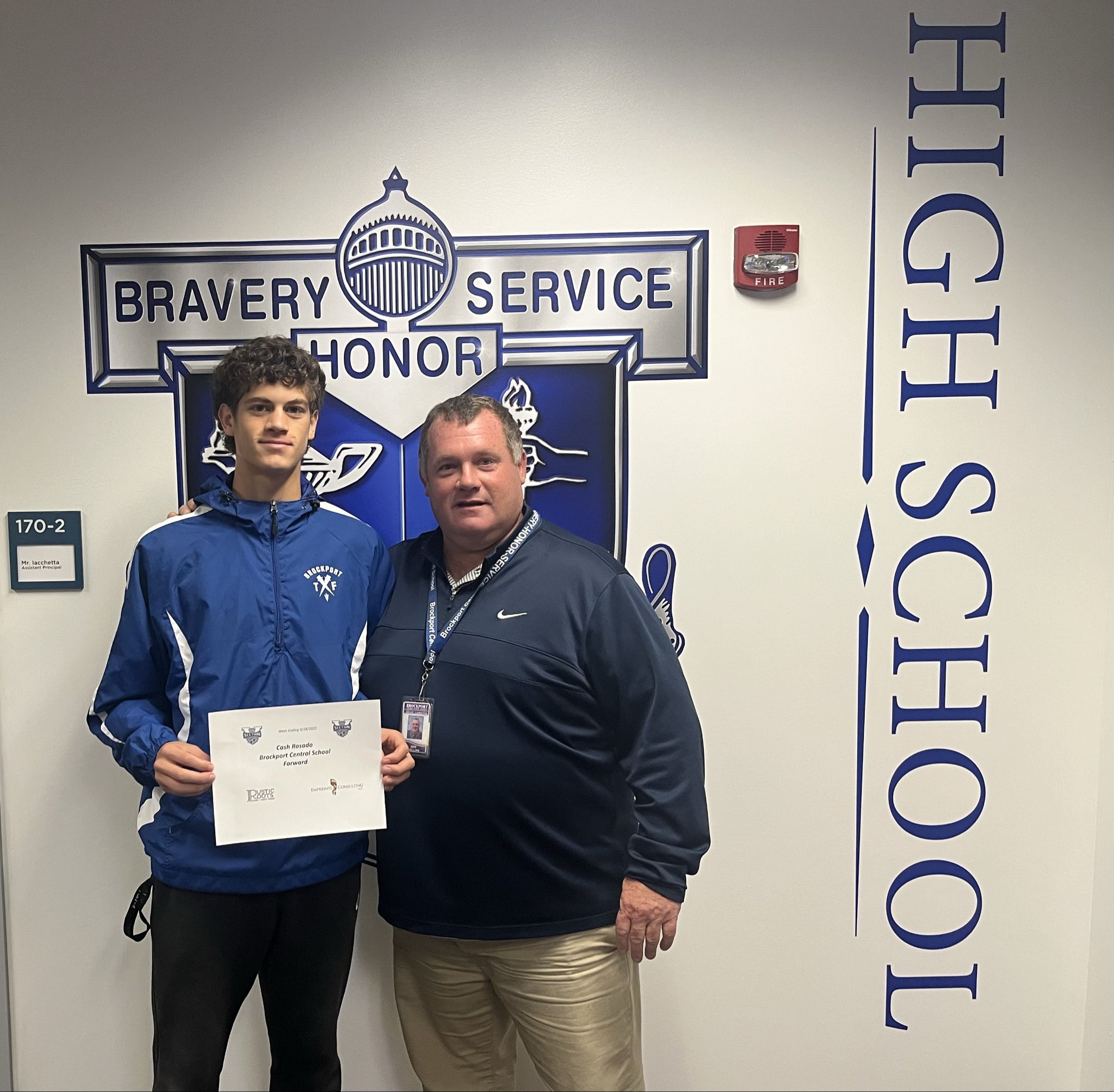Brockport forward Cash Rosado was named the Section V Boys Soccer Player of the Week for September 22-28. Photo from @BCSDBlueDevils on X.